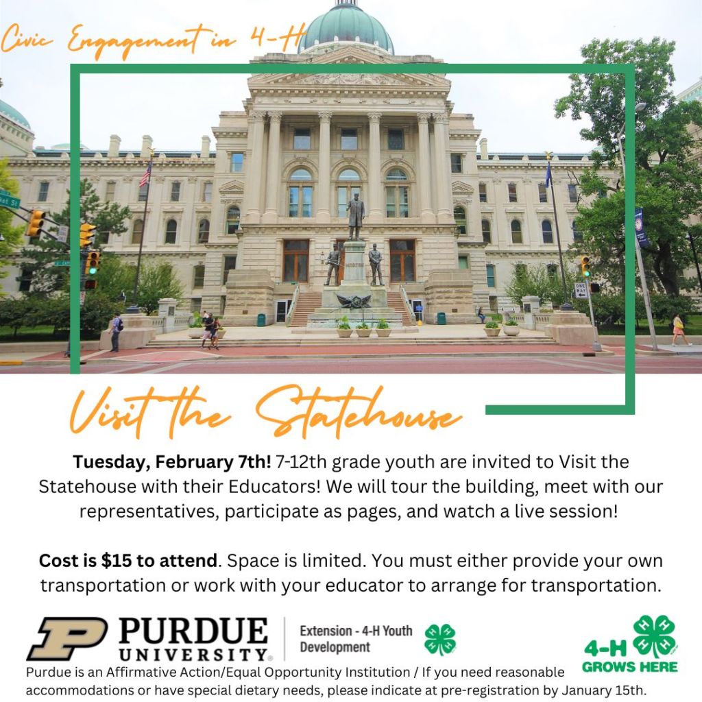 - Check out the event website at: Indiana 4-H Day at the Statehouse