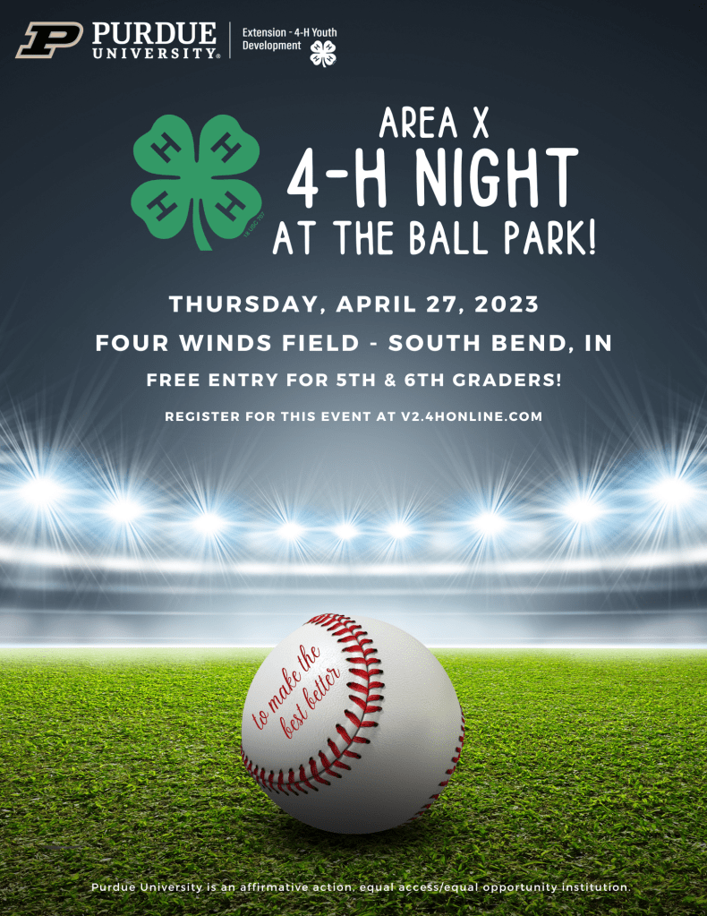 This event will take place on Thursday, April 27th at Four Winds Field in South Bend, IN. 4-H’ers will receive: