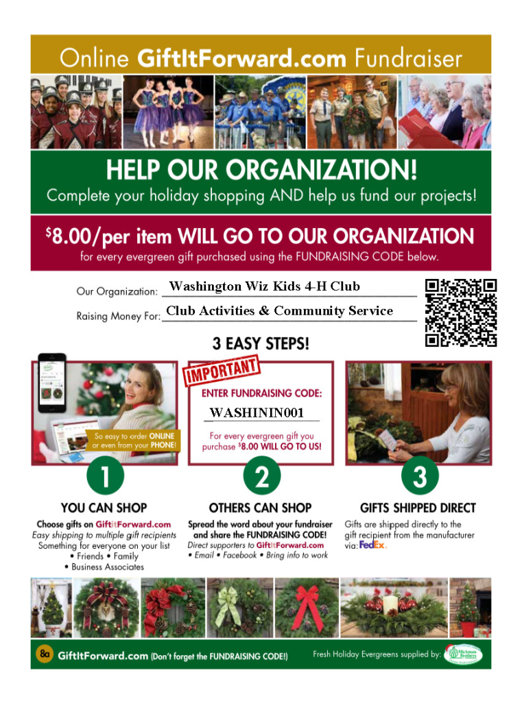 1)100% of the profits go to Washington Wiz Kids 4-H Club. The profits cover costs such as our club’s annual Ice Cream Social New Member Call-Out, Christmas Party, fillable Easter Eggs for Hilltop House, as well as many other community service projects that we do.