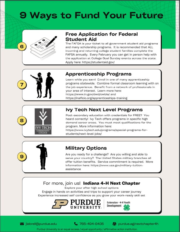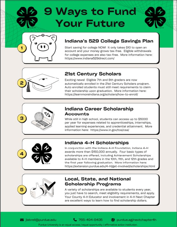 Get information on 4-H Next Chapter purdue.ag/nextchapter4h and become Beyond Ready!