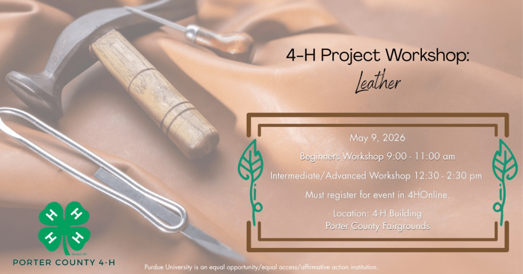 Youth must register for the workshop via 4HOnline by following the link > https://PoCoLeatherWorkshop2026.4honline.com
