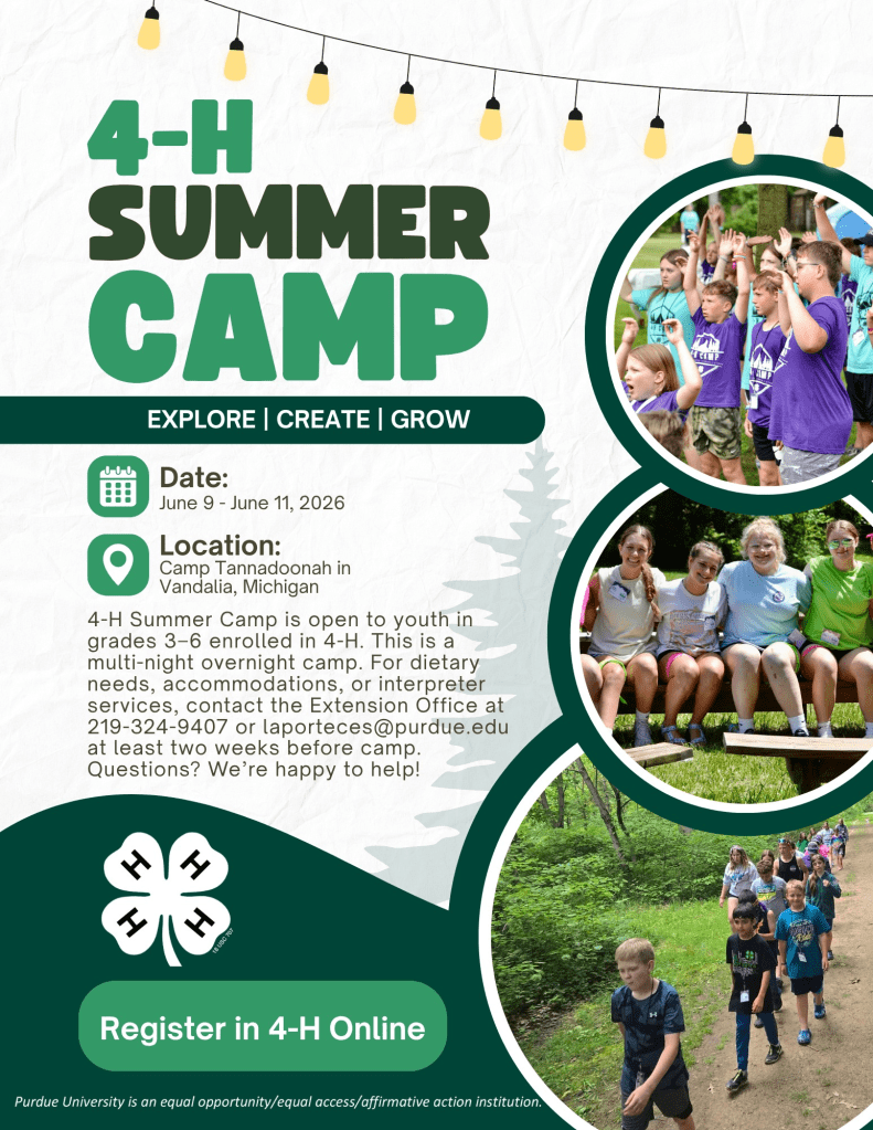 Open to 4-H members in Lake, LaPorte, Porter, and Starke counties.